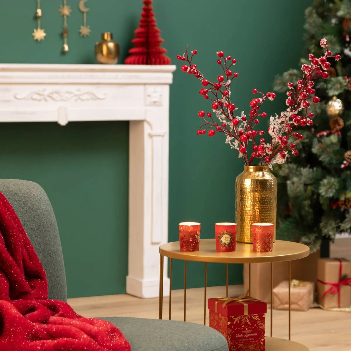 Set de 3 velas perfumadas de 45 gr con tarro de cristal impreso en rojo - 191139