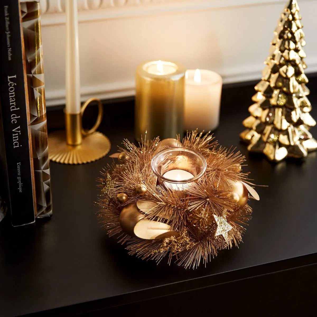 Portavelas de té de vidrio dorado natural - 208433
