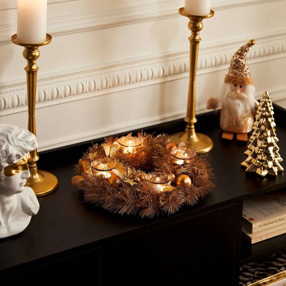 Candelero de vidrio "Corona de oro" natural con 4 portavelas - 208435