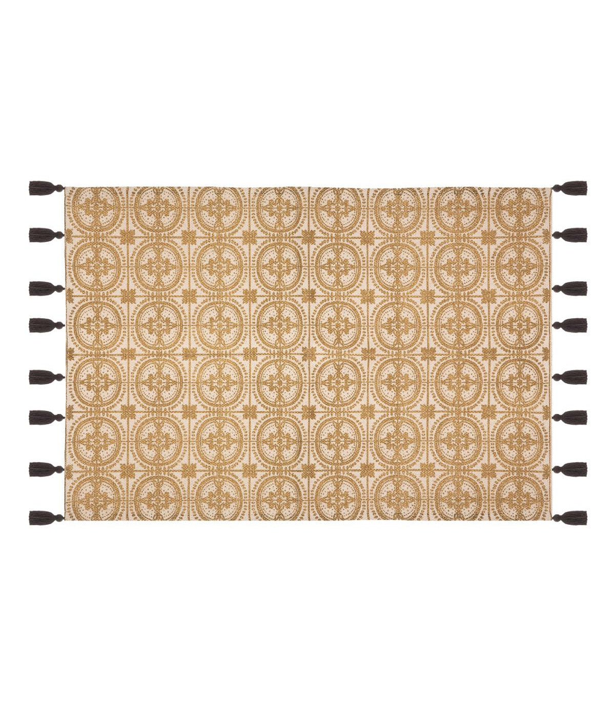 Alfombra decorativa de flores de algodón con motivos dorados y pompones 60x90 - 172479