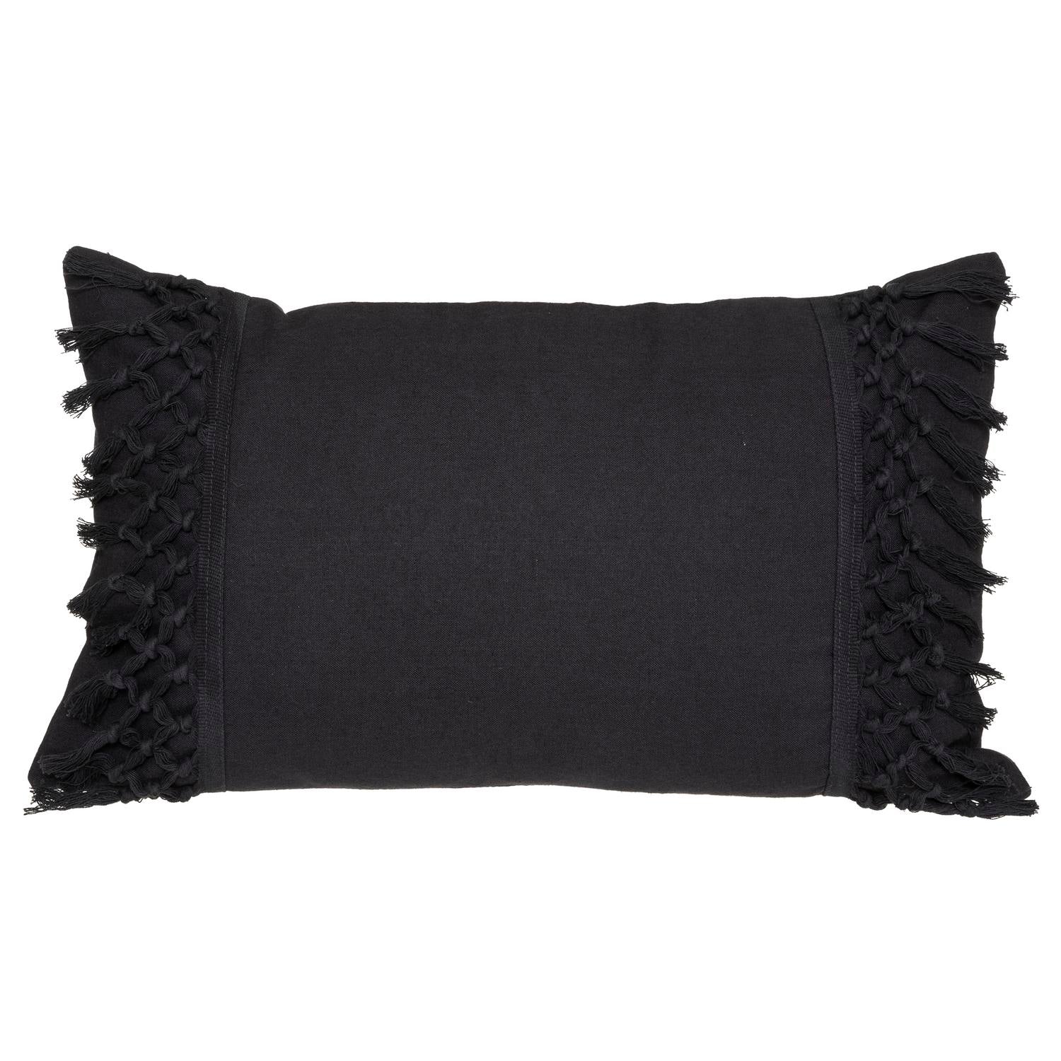 Almohada con flecos macramé de algodón gris oscuro 30x50cm - 181028L