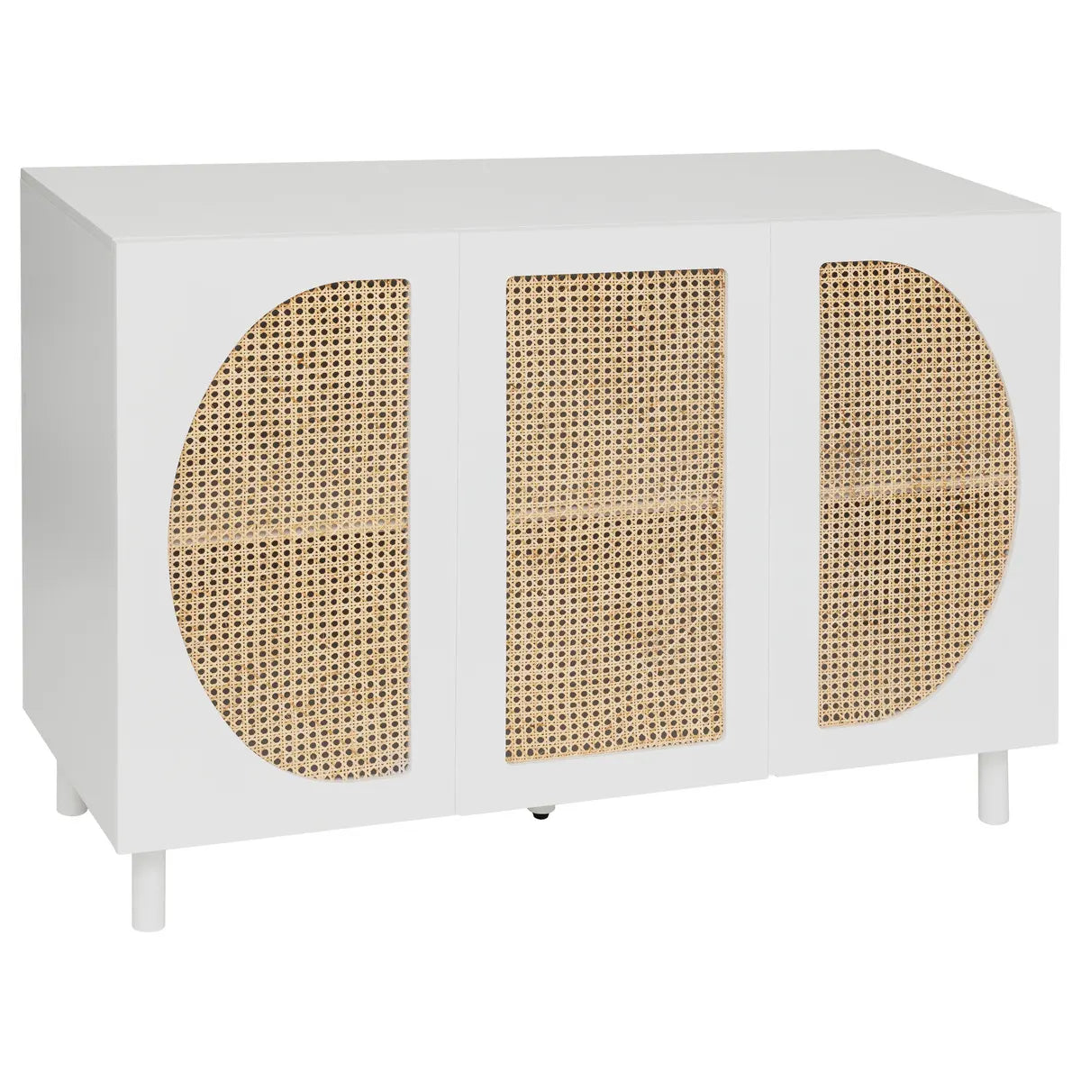 Aparador 3 puertas "Cabras" madera blanco y ratán 120x85cm - 197716