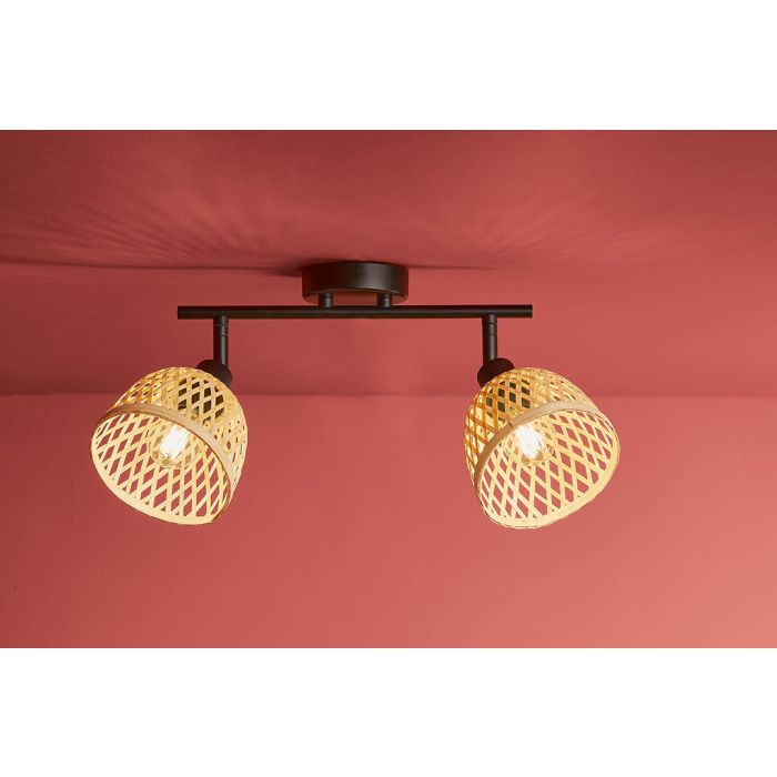 Dimensión: 38 x 12,5 x Alto 22 cm Peso: 0,56 kilos Material: Bambú y Metal Color: NATURAL Casquillo: E14 Potencia:... Leer más...