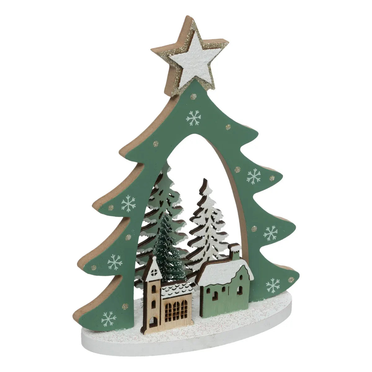 Árbol navideño con paisaje de madera A20cm - 199298