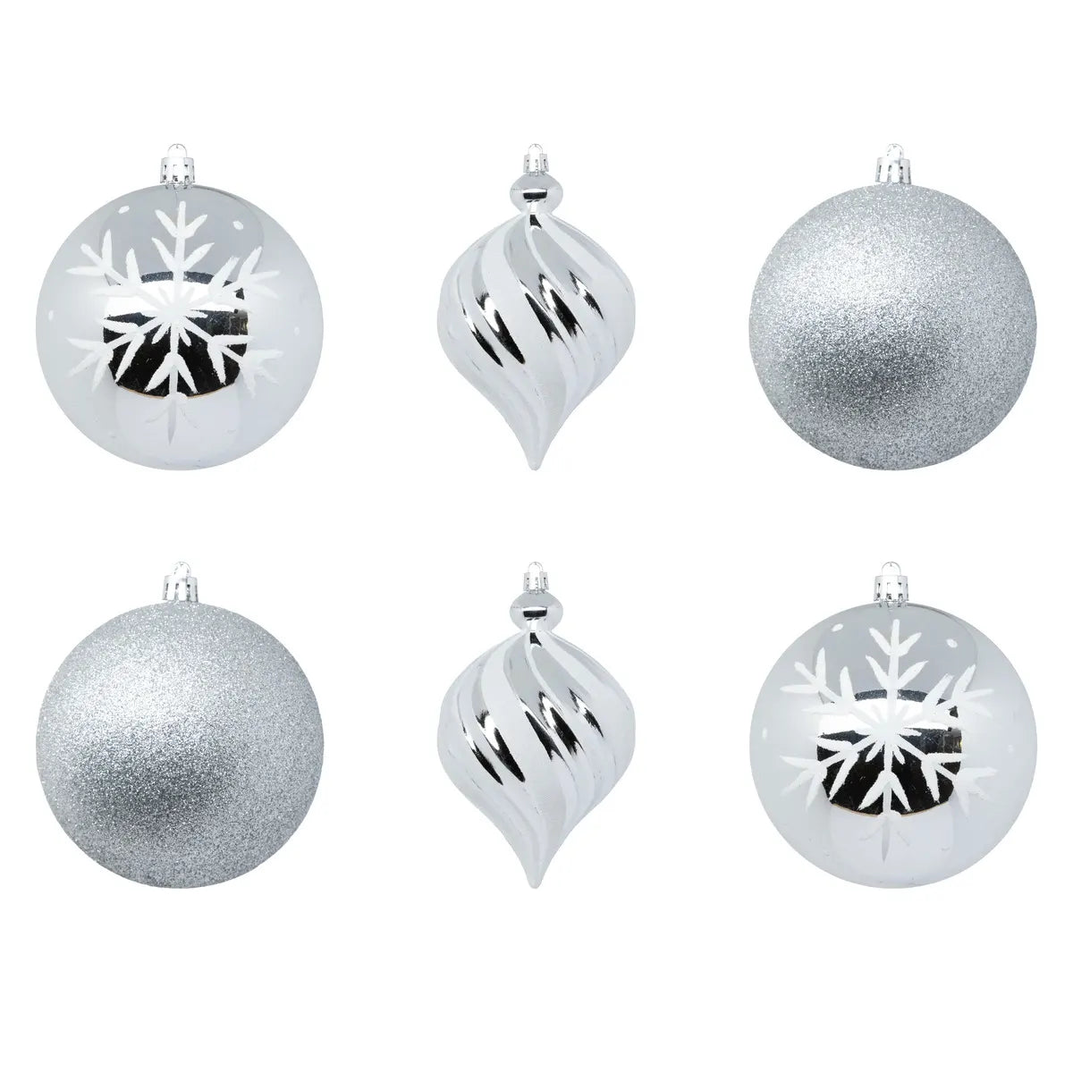 Bola navideña D10cm x6 plateado y blanco - 198345