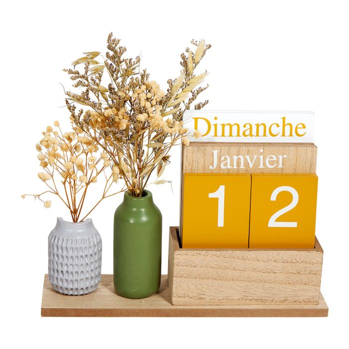 Calendario perpetuo con florero y flores secas 24x15,5cm - 36394