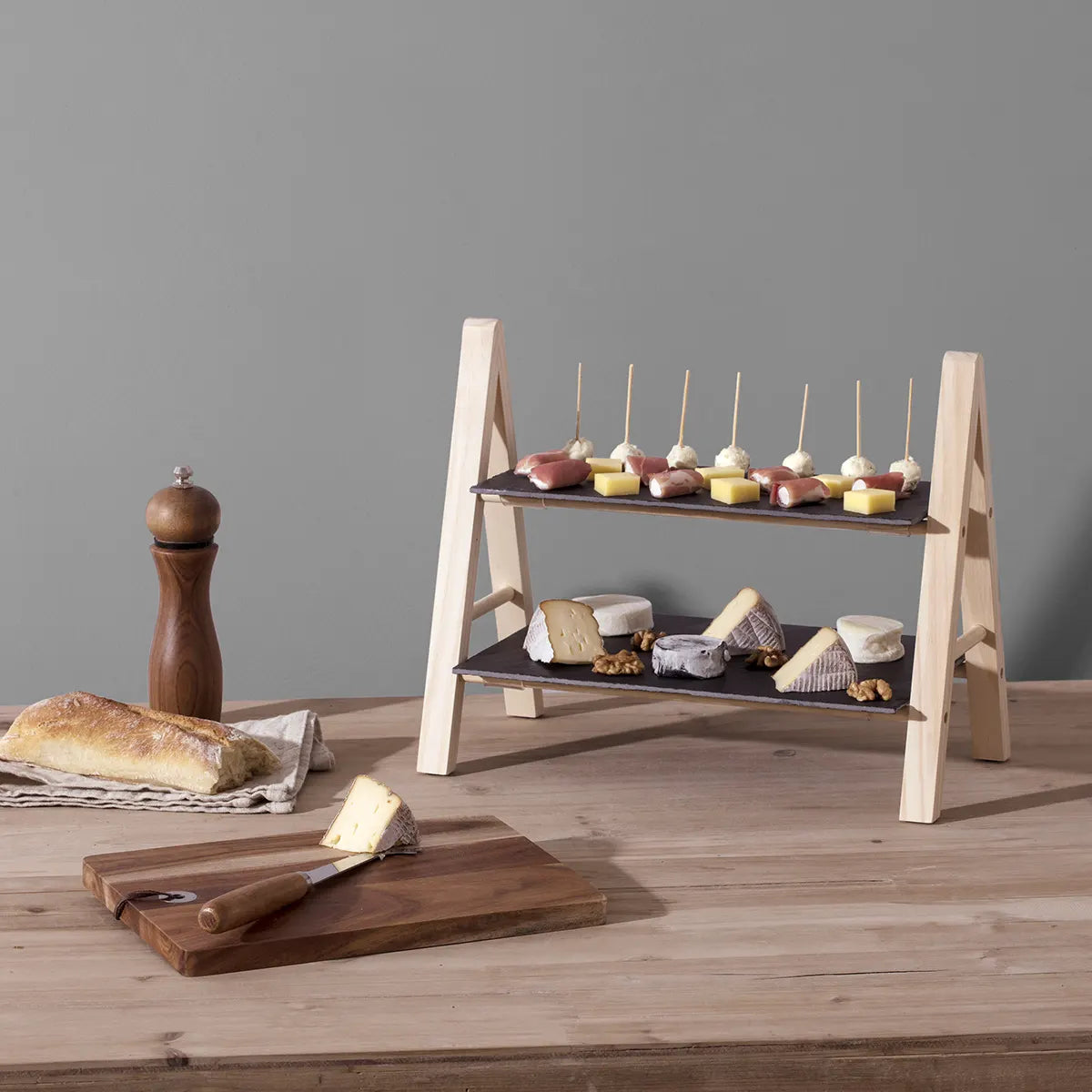 Carrito de servicio de 2 niveles de pizarra y bambú - 160505