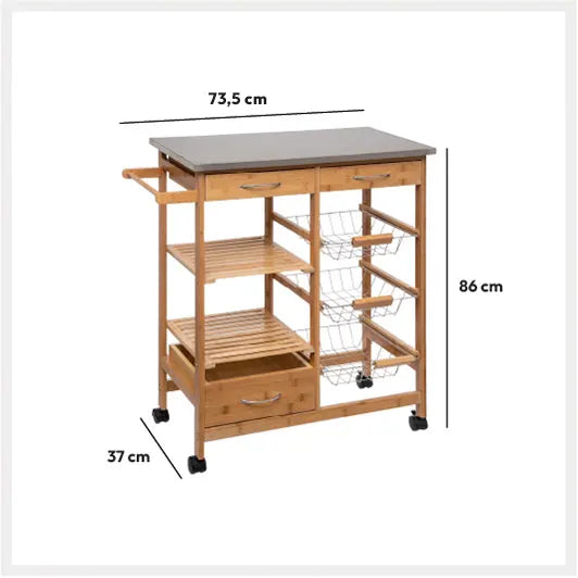 Dimensiones L. 73,5 x P. 37 x A. 86 cm Peso 10,85 kilos Material estructura Bambú Material de la bandeja... Leer más...