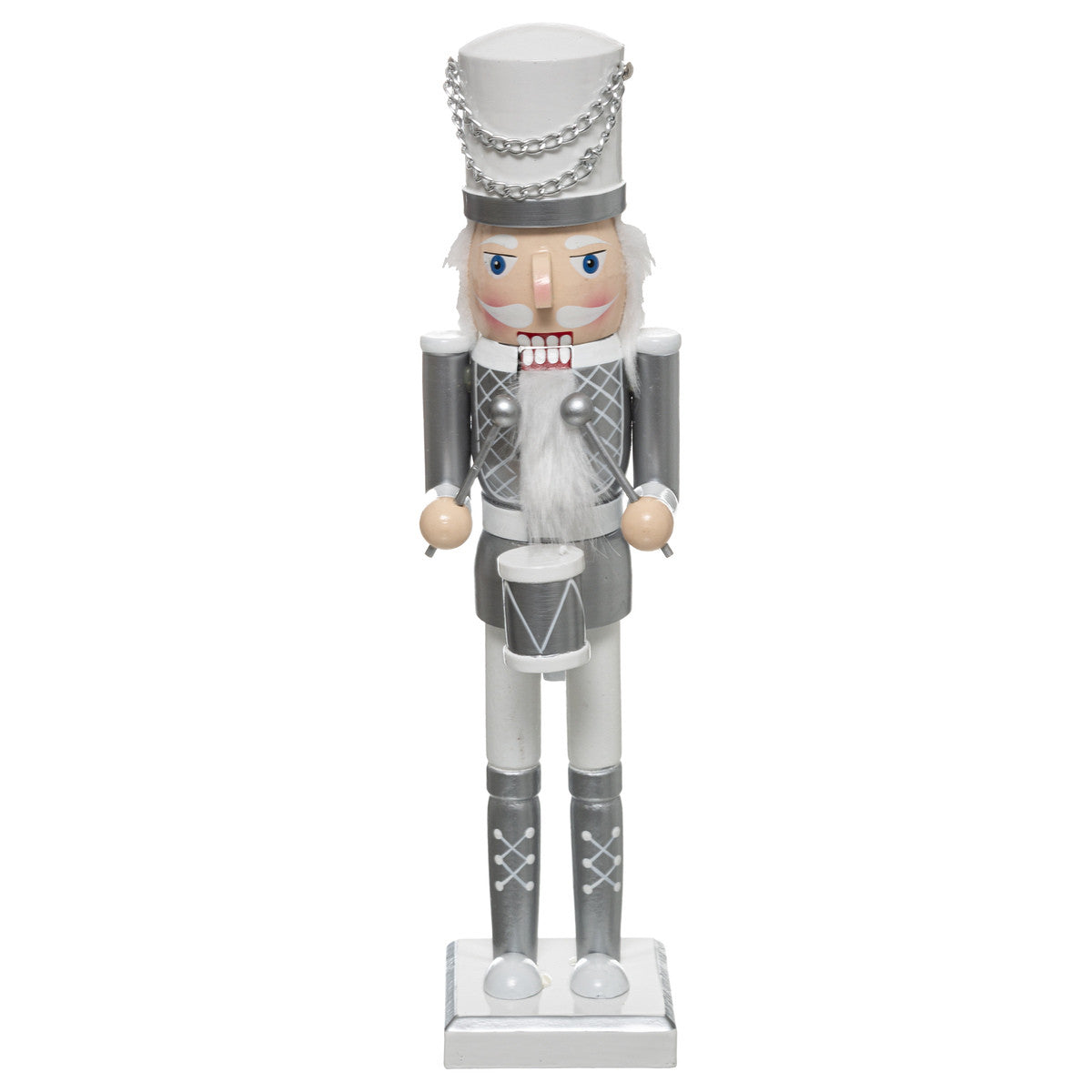 Cascanueces de madera blanca y plata A38cm - 128324S