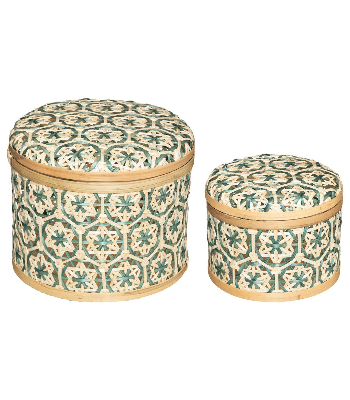 Cesta "Folk" caja redonda de bambú PM - 178767