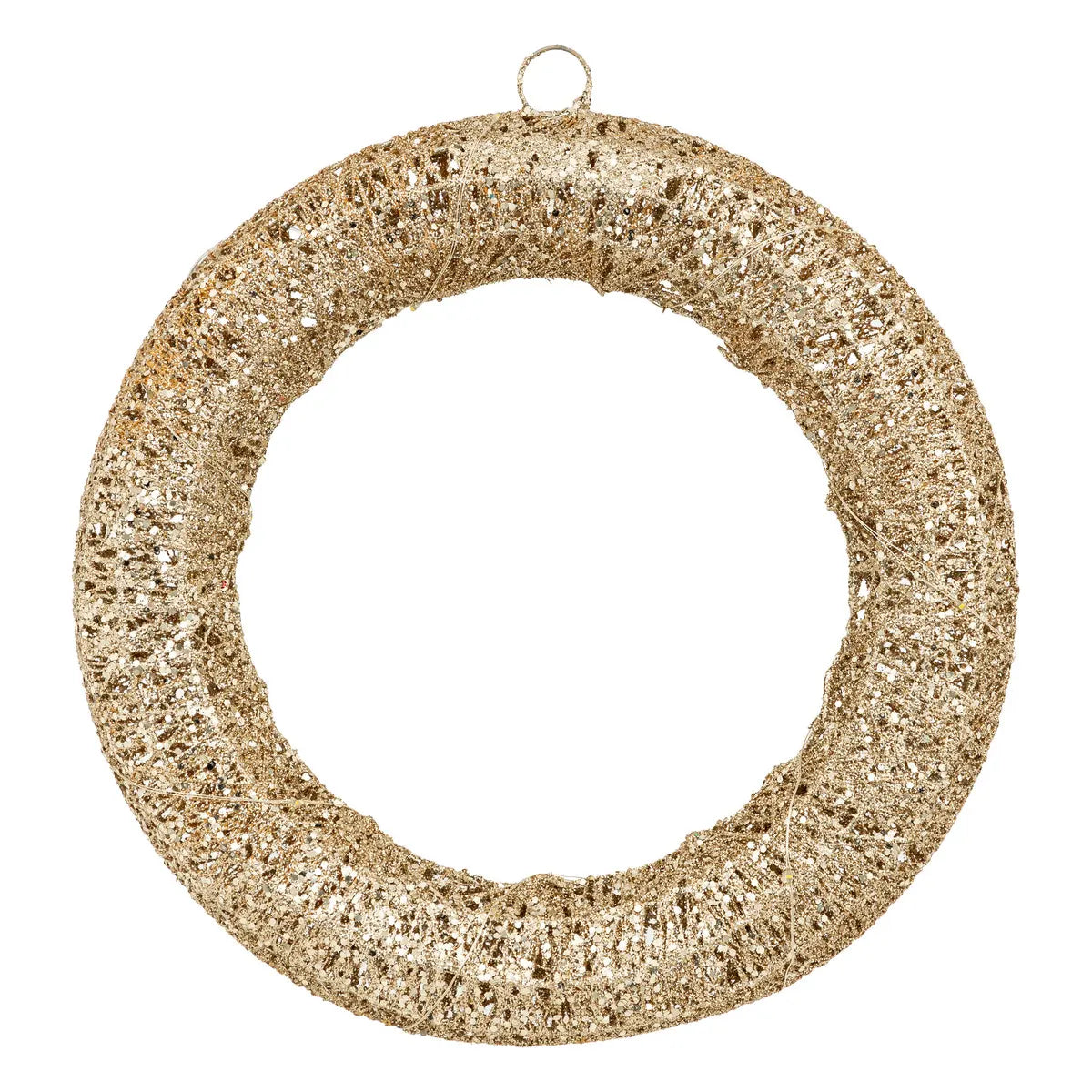 Corona dorada D30cm 15 LED blanco cálido funciona con pilas - 199885