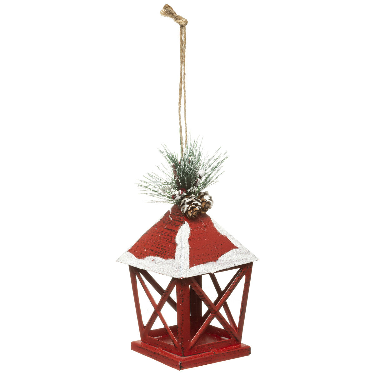 Deco navideño "Linterna" de metal rojo blanco - 176576