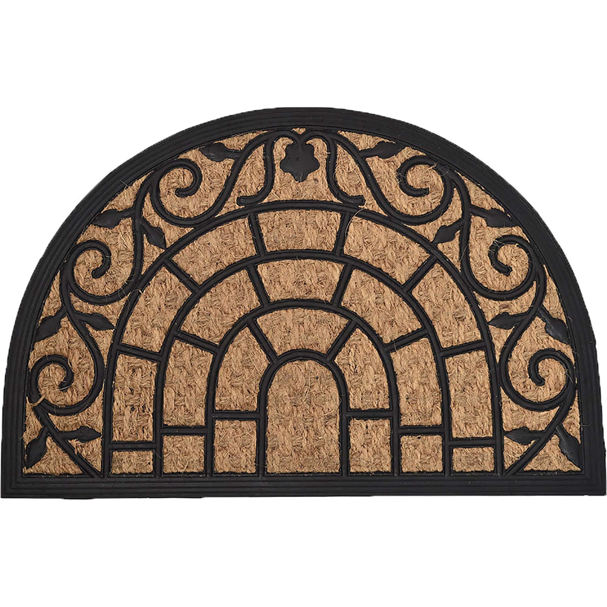 Ingrese a la eficiencia con nuestro felpudo semicircular protegido, diseñado para áreas exteriores cubiertas, como porches o toldos, para protegerse de la luz solar directa y la humedad. Este tapete combina la resistencia natural de las fibras de cáscara de coco con la resiliencia del caucho para formar una solución de entrada resistente y natural. Su exclusiva forma de media luna y su atractivo diseño de caucho de fibra de coco realzan el aspecto de cualquier entrada, proporcionando una sofisticada bienvenida a los invitados. Las resistentes fibras de coco raspan eficazmente la suciedad, los residuos y la humedad de los zapatos, garantizando que sus espacios interiores permanezcan limpios. Su parte superior de goma antideslizante y su respaldo resistente aumentan la seguridad al evitar resbalones. Fácil de mantener, el tapete se puede limpiar rápidamente sacudiéndolo, barriéndolo o aspirándolo. Ideal para áreas de mucho tráfico, resiste todas las condiciones climáticas, lo que lo convierte en una opción práctica para cualquier hogar.