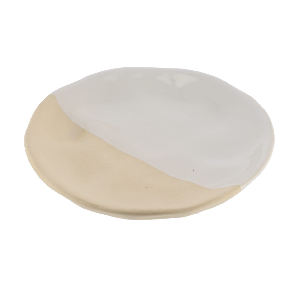 Jabonera de cerámica bicolor beige y blanco - 64137161