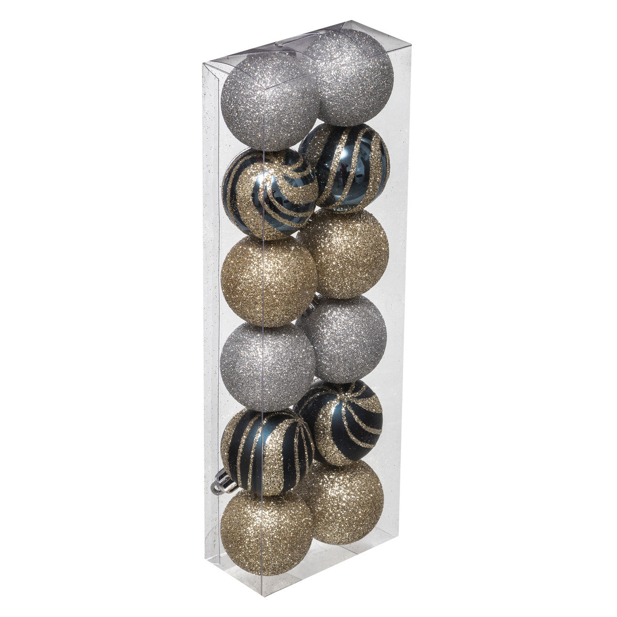 Juego de 12 bolas navideñas D4cm Champán azul y plateado - 129153L2