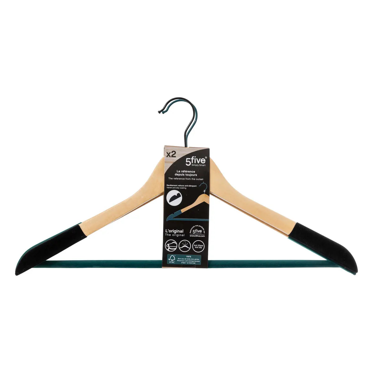 Juego de 2 perchas de madera con revestimiento de terciopelo - 193473