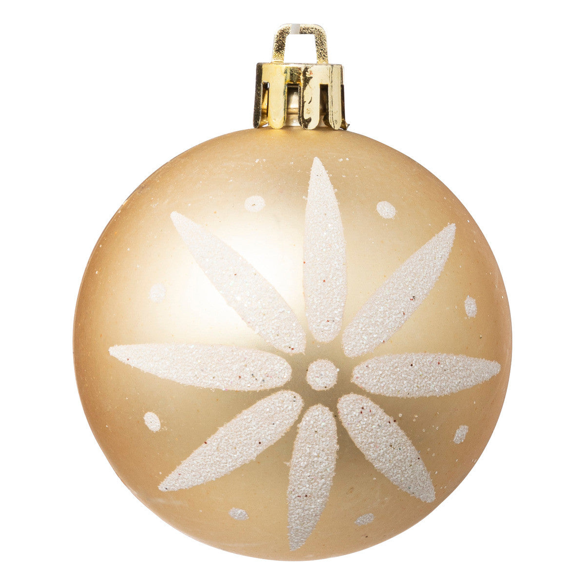 Juego de 25 bolas navideñas D6cm estampado blanco y dorado - 184660