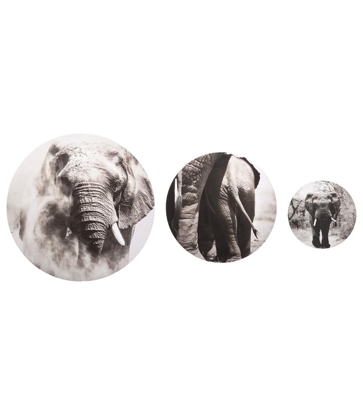 Juego de 3 cuadros de pared redondas estampado elefante D 20 30 y 40 - 179519