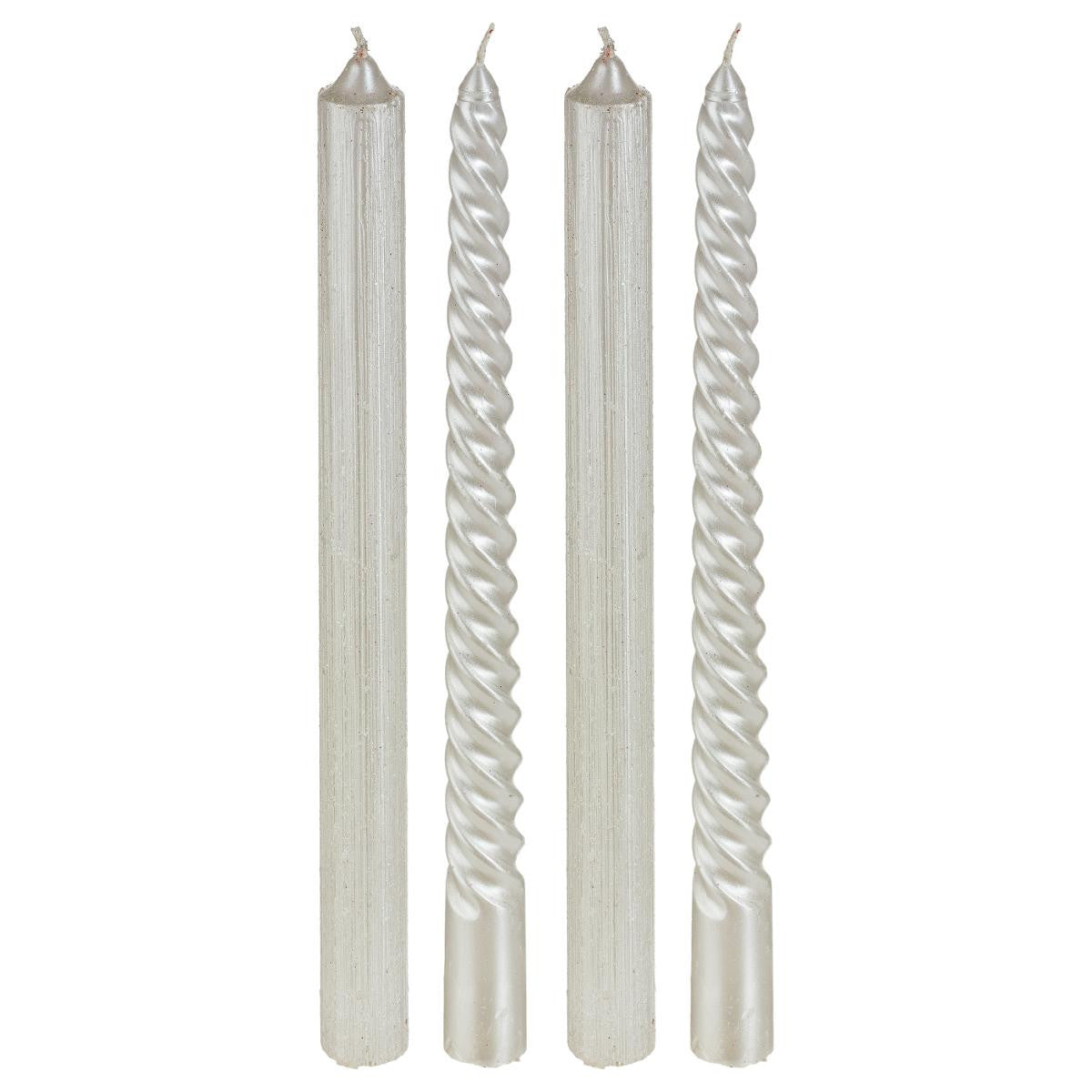 Juego de 4 velas con purpurina y varillas retorcidas H25 blanco - 129849BL