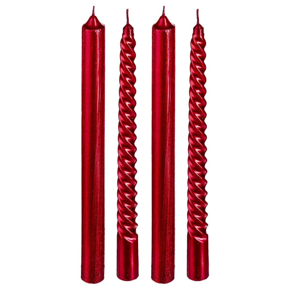 Juego de 4 velas con purpurina y varillas retorcidas H25 rojo - 129849RG