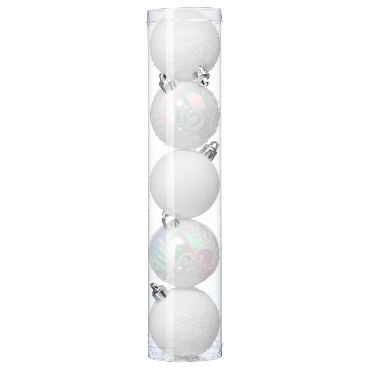 Juego de 5 bolas navideñas D5cm blanco - 129221BL