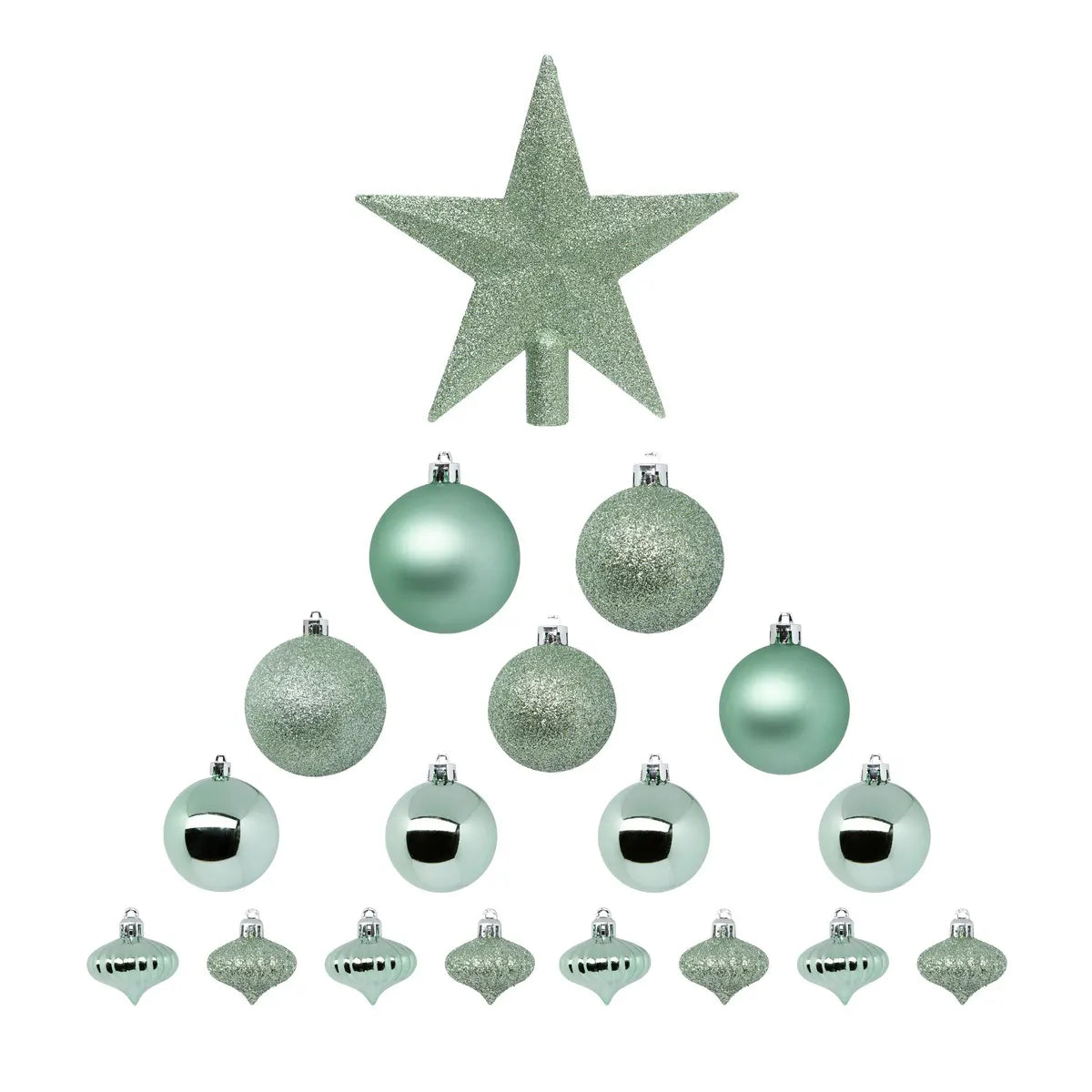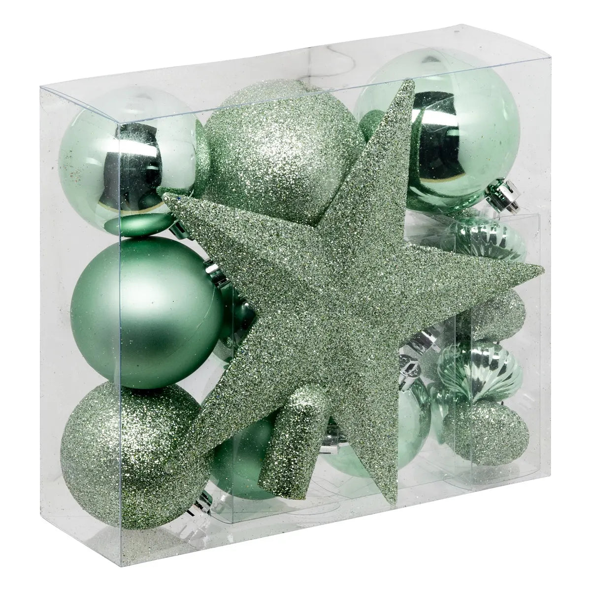 Kit navideño de 18 piezas surtidas Bolas y Escudo, verde almendra - 113044VN