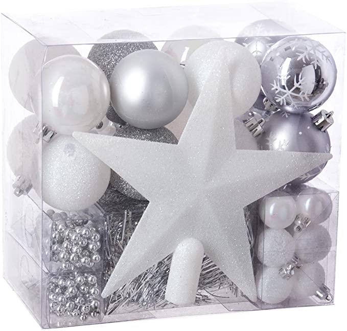 Kit navideño de 44 piezas surtidas, bolas, guirnaldas y escudo en blanco - 694531S