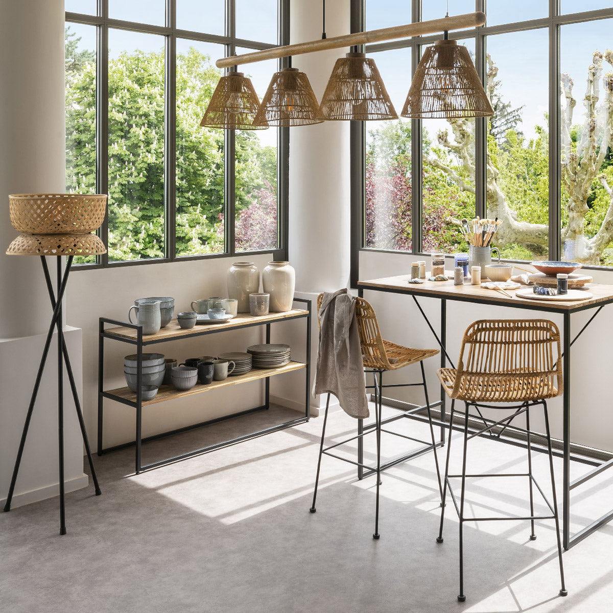 Lámpara suspendida "Judi" de 4 luces con aspecto de cuerda y metal - 195357
