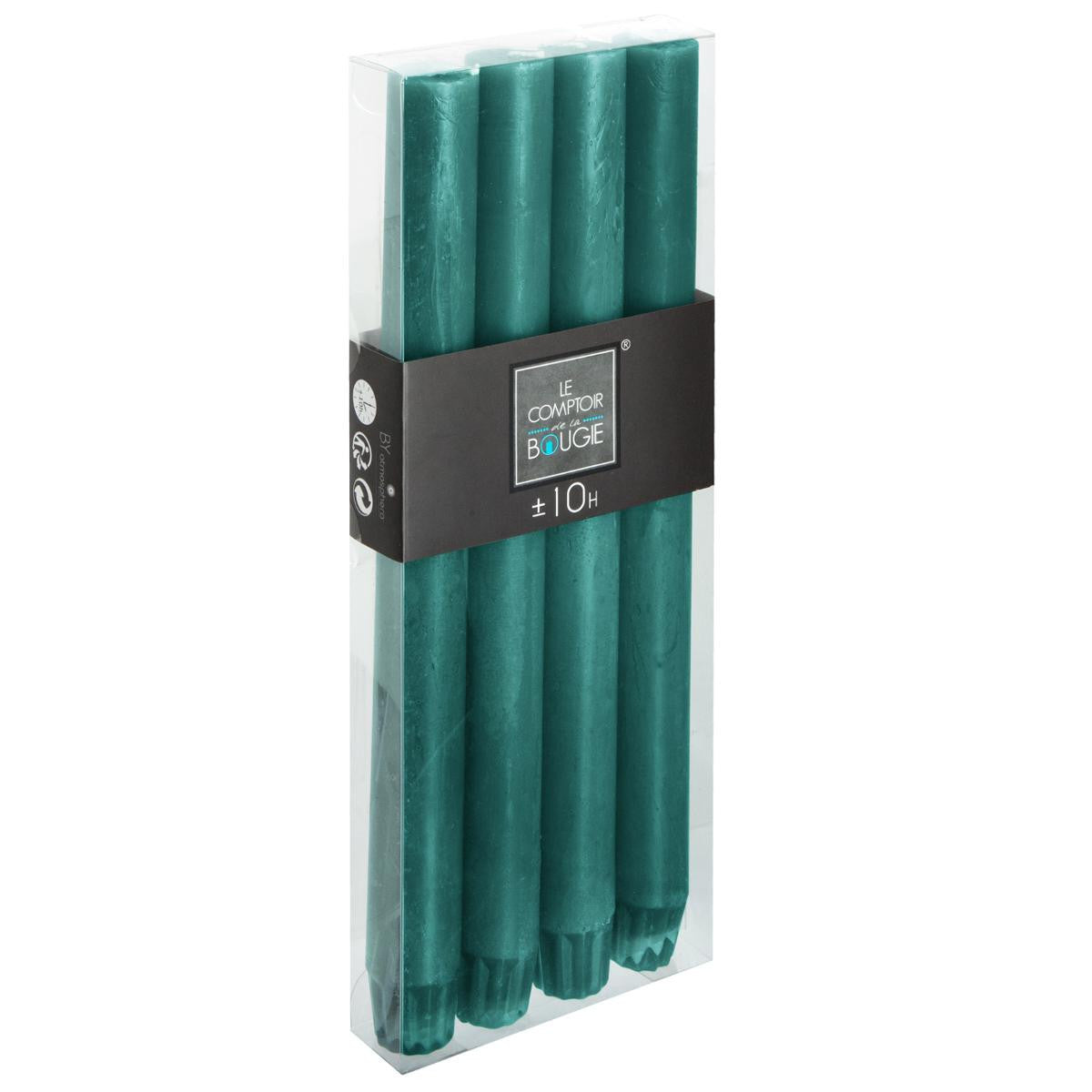 Lote de 4 velas de varilla rústicas P.2,2 x A.24,7 cm Verde esmeralda - 145314D