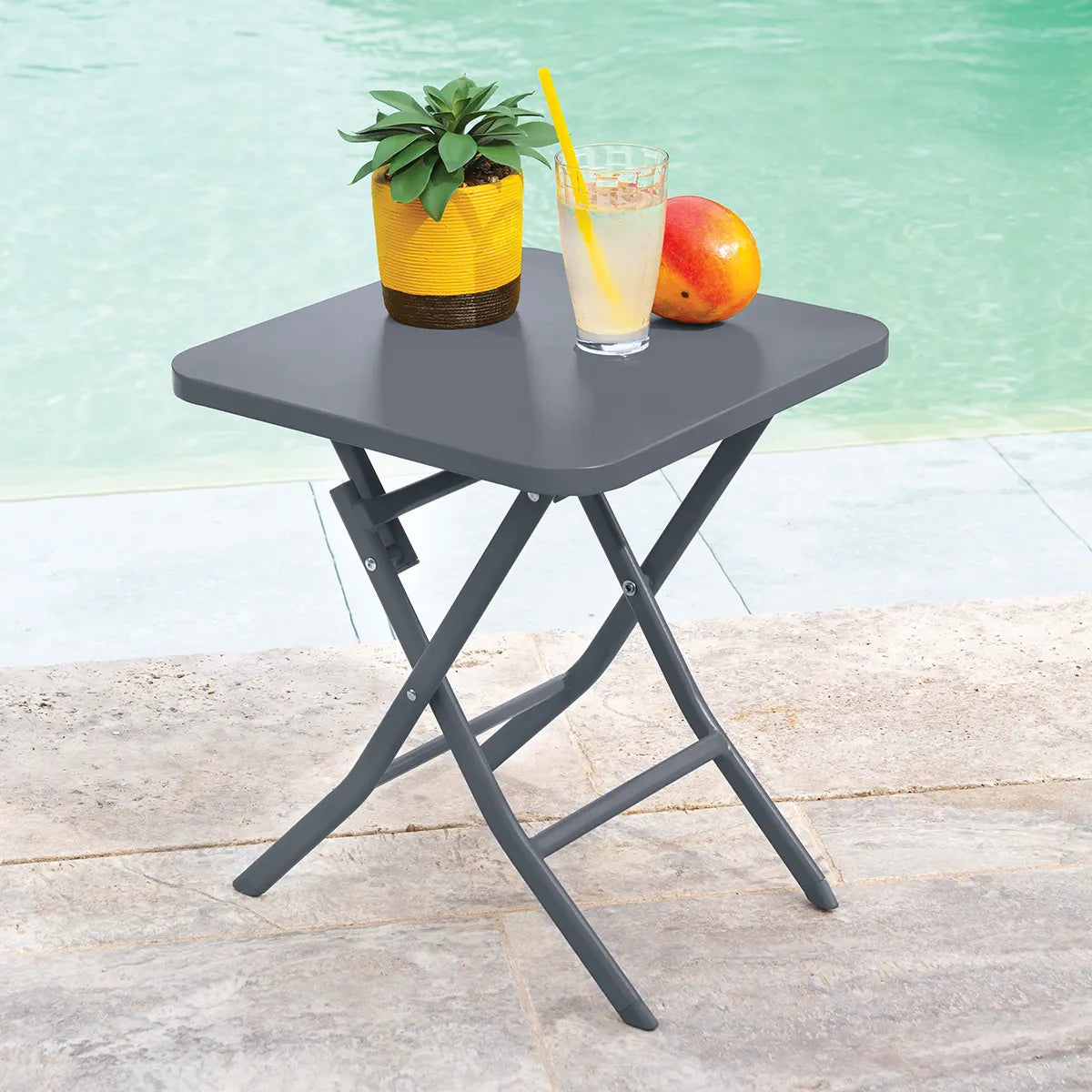Muy práctica, la mesa auxiliar de jardín cuadrada "Greensboro" Hespéride será un accesorio indispensable para los espacios exteriores estrechos.