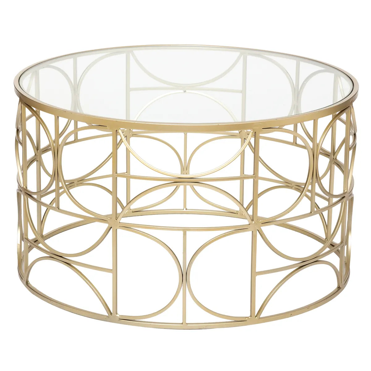 Una base de metal dorado intrincadamente trabajada, tapa de cristal templado.... La mesa de centro "Suite" Atmosphera aportará un toque Art Déco muy chic a su salón.