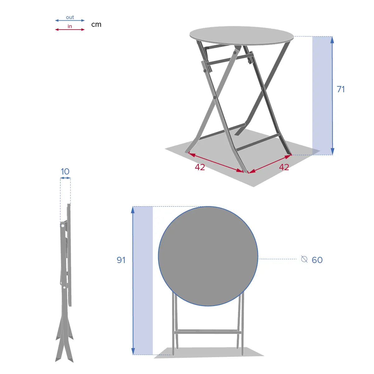 Mesa de jardín plegable redonda "Greensboro" granada 2 plazas - 171118