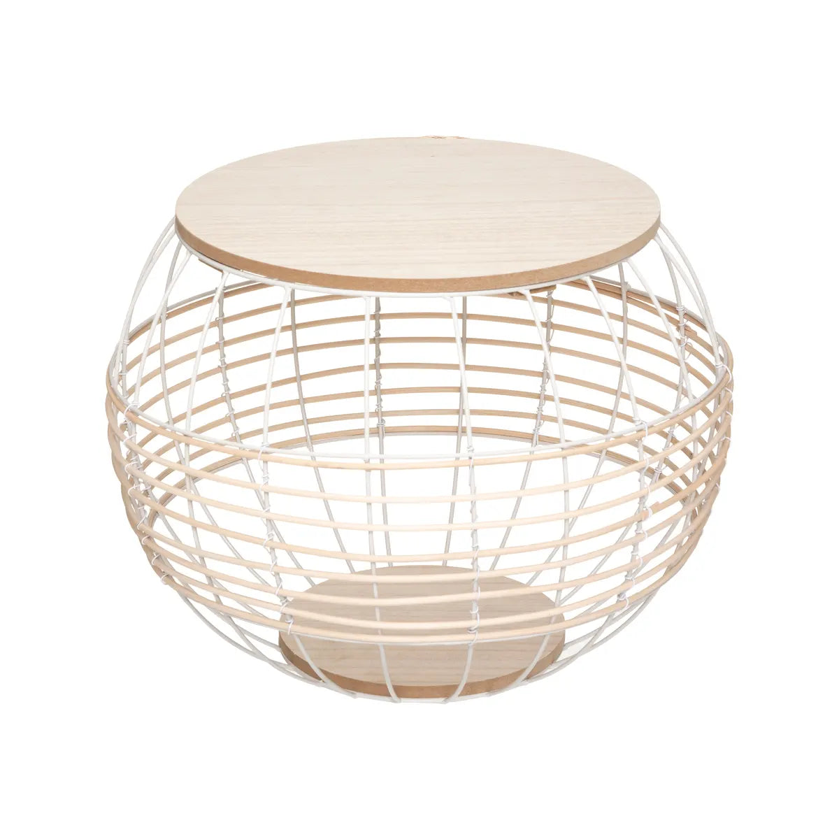 Todo volumen, pero ligeras y transparentes, estas 2 mesas de centro esféricas adoptan los códigos del estilo escandinavo. Mientras saborea su café, apreciará el equilibrio entre la estructura metálica adornada con hebras de ratán entrelazadas y el tablero de madera clara.