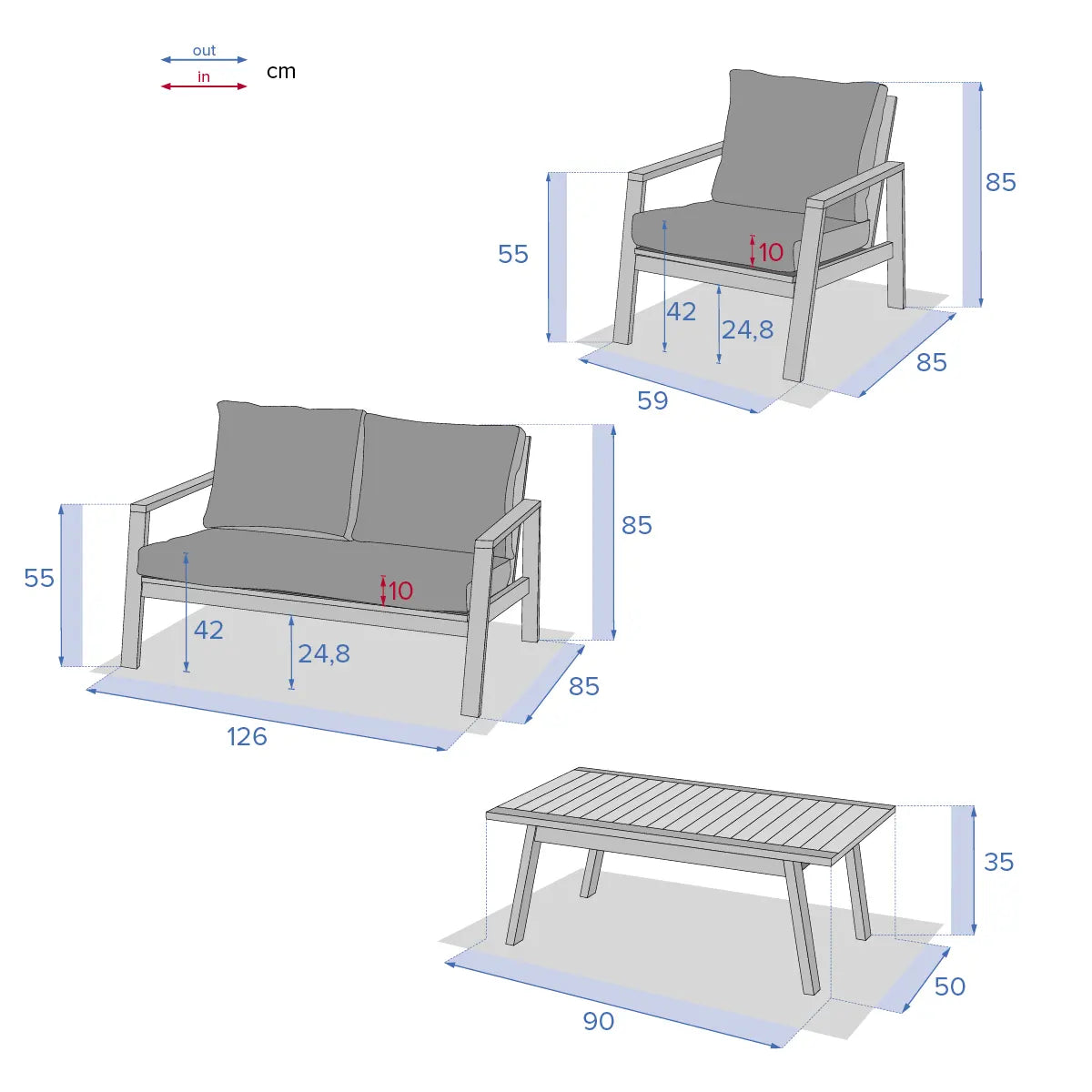 Muebles de jardín de acacia "Tiwi" de 4 piezas - 165614