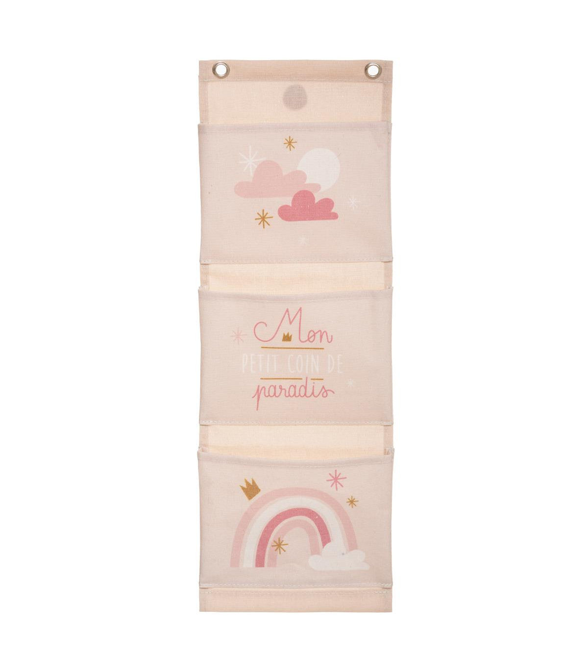 Organizador de pared textil con 3 bolsillos rosa - 174050B