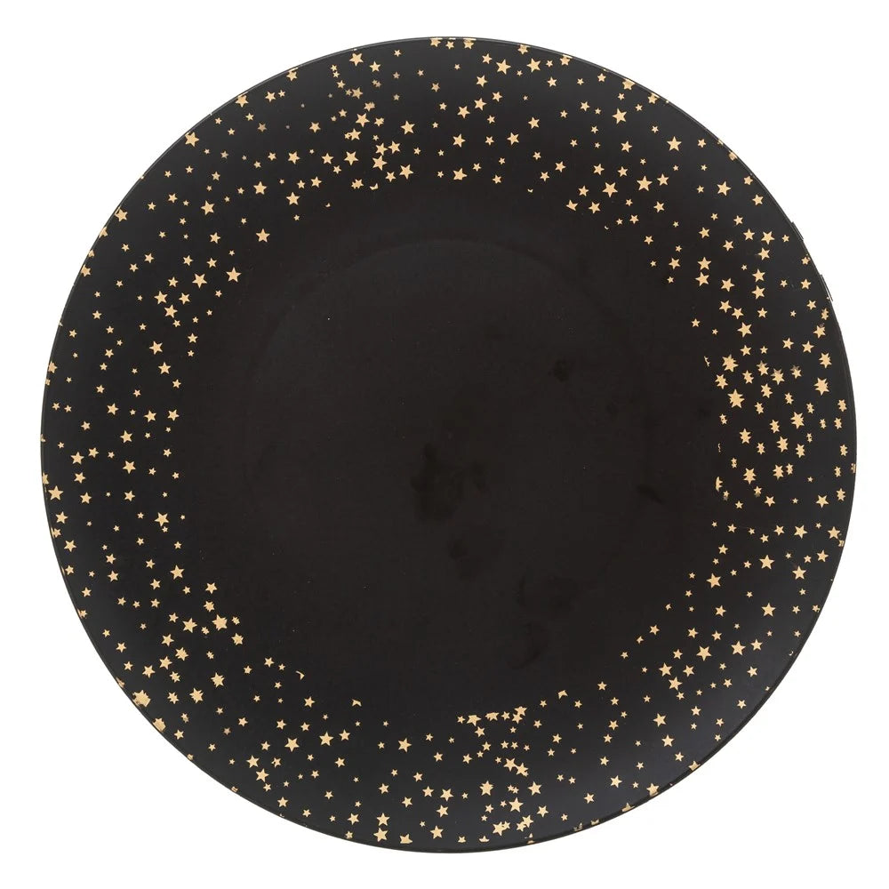 Plato de presentación negro y dorado con estrellas D33cm - 162752E