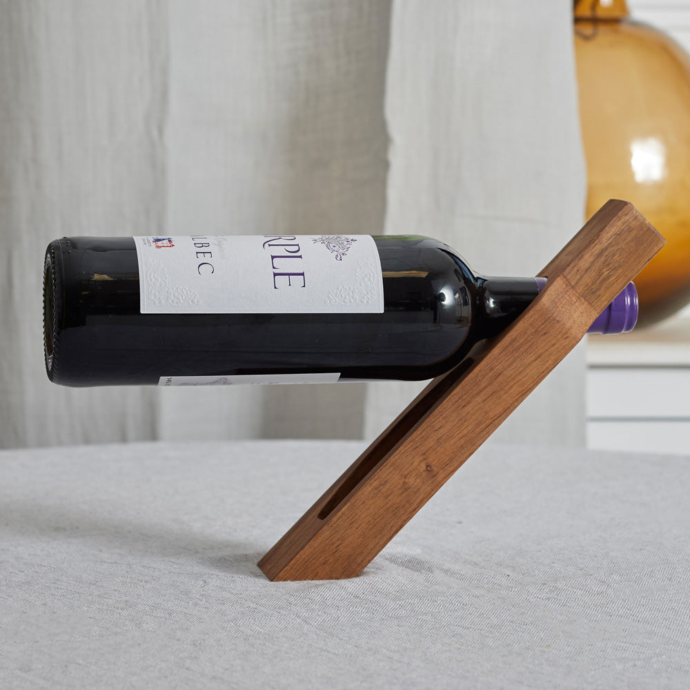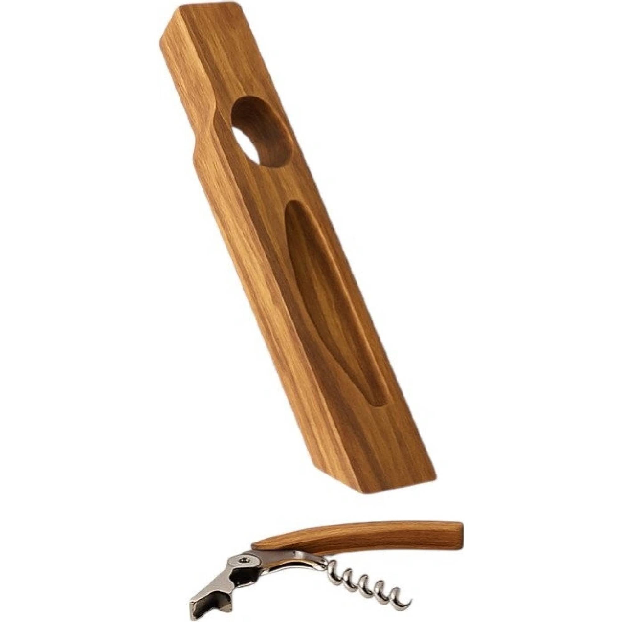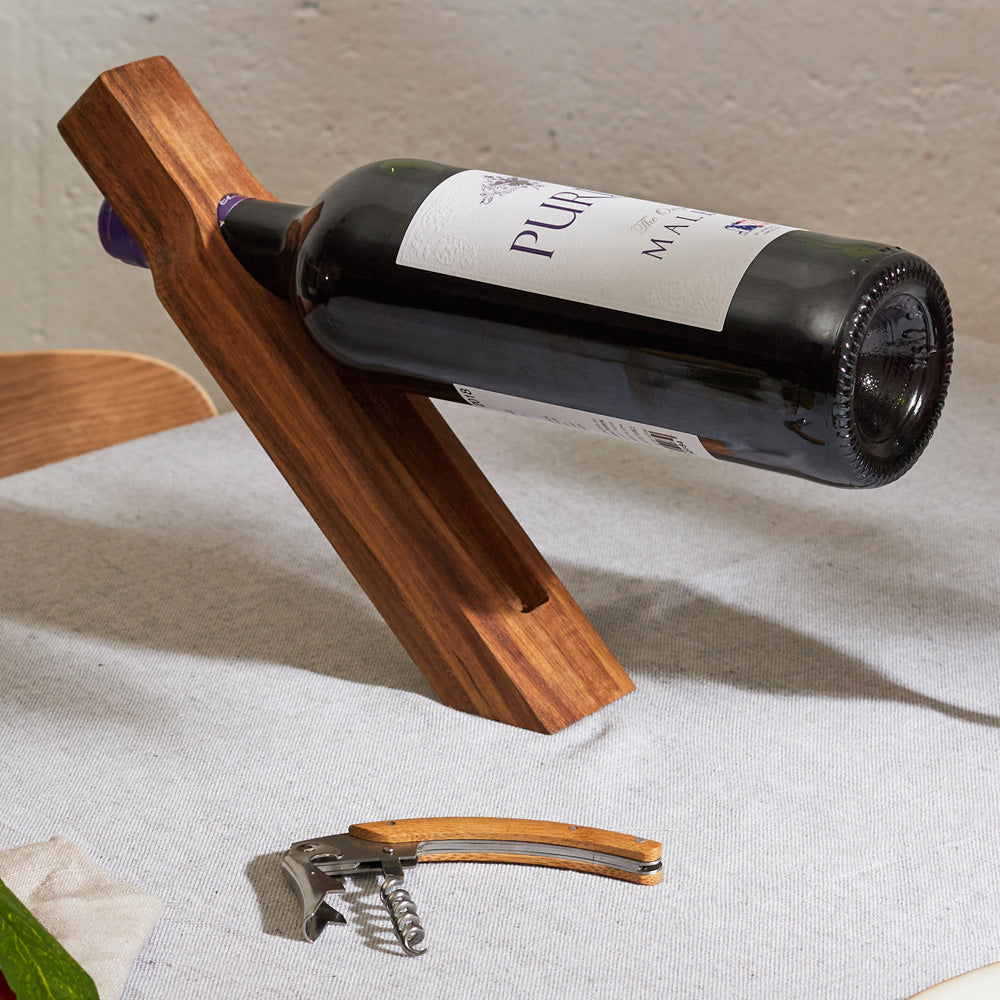 Un elegante set para amantes del vino que combina un elegante portabotellas con un práctico sacacorchos. El portabotellas está fabricado en madera de acacia de alta calidad y, gracias a su ingenioso diseño, crea el efecto de una botella levitando. El paquete incluye un sacacorchos metálico de doble brazo para facilitar la apertura de vinos. Este set es ideal como accesorio para el hogar o un regalo original para amantes del vino y gourmets. Características: Material: madera de acacia, metal. Diseño para una sujeción estable de la botella y una presentación elegante. El paquete incluye un sacacorchos de doble brazo. Apto para la mayoría de las botellas de vino estándar