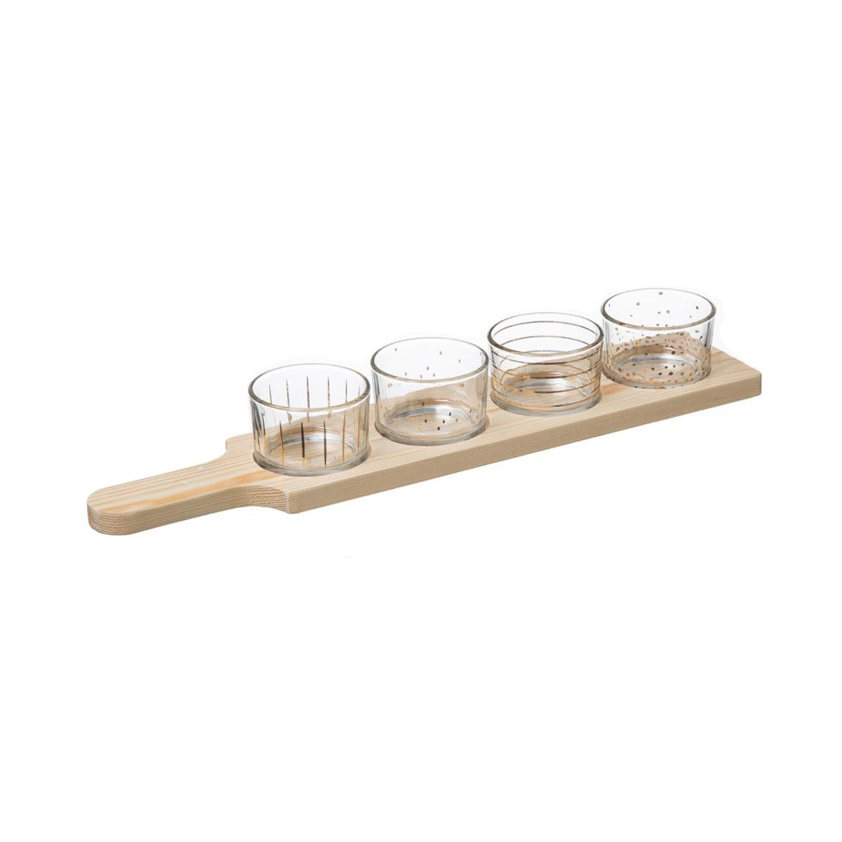 Set de aperitivo 5 piezas 1 bandeja de madera y 4 vasos de cristal - 173706