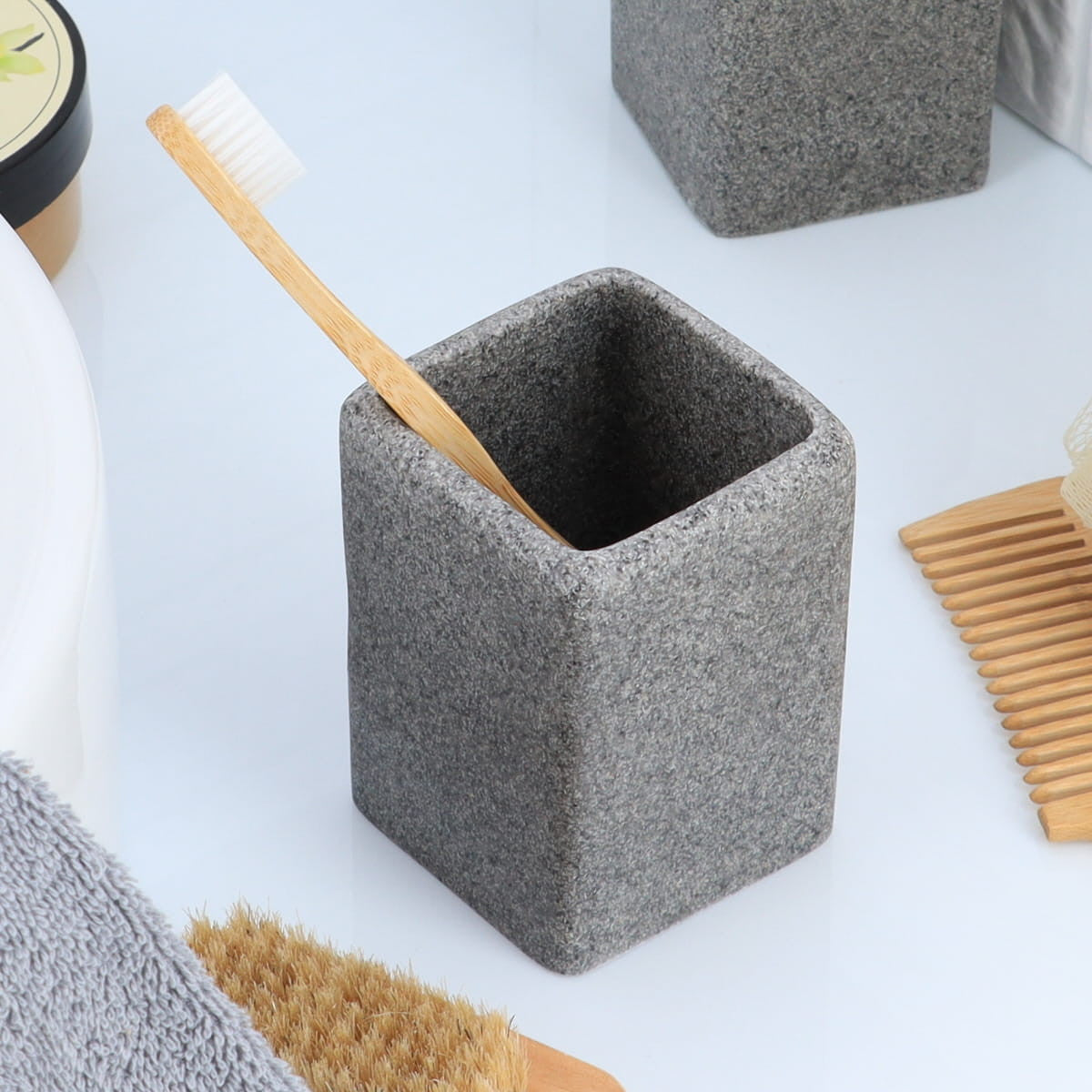 Vaso para cepillos de dientes en poliresina efecto piedra gris - 6194180