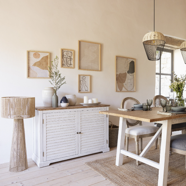 ¡Instala tu lámpara de pie recta "Adria" cerca de una mesa de comedor de madera exótica Atmosphera y disfruta de una atmósfera propicia para la evasión en tu interior!