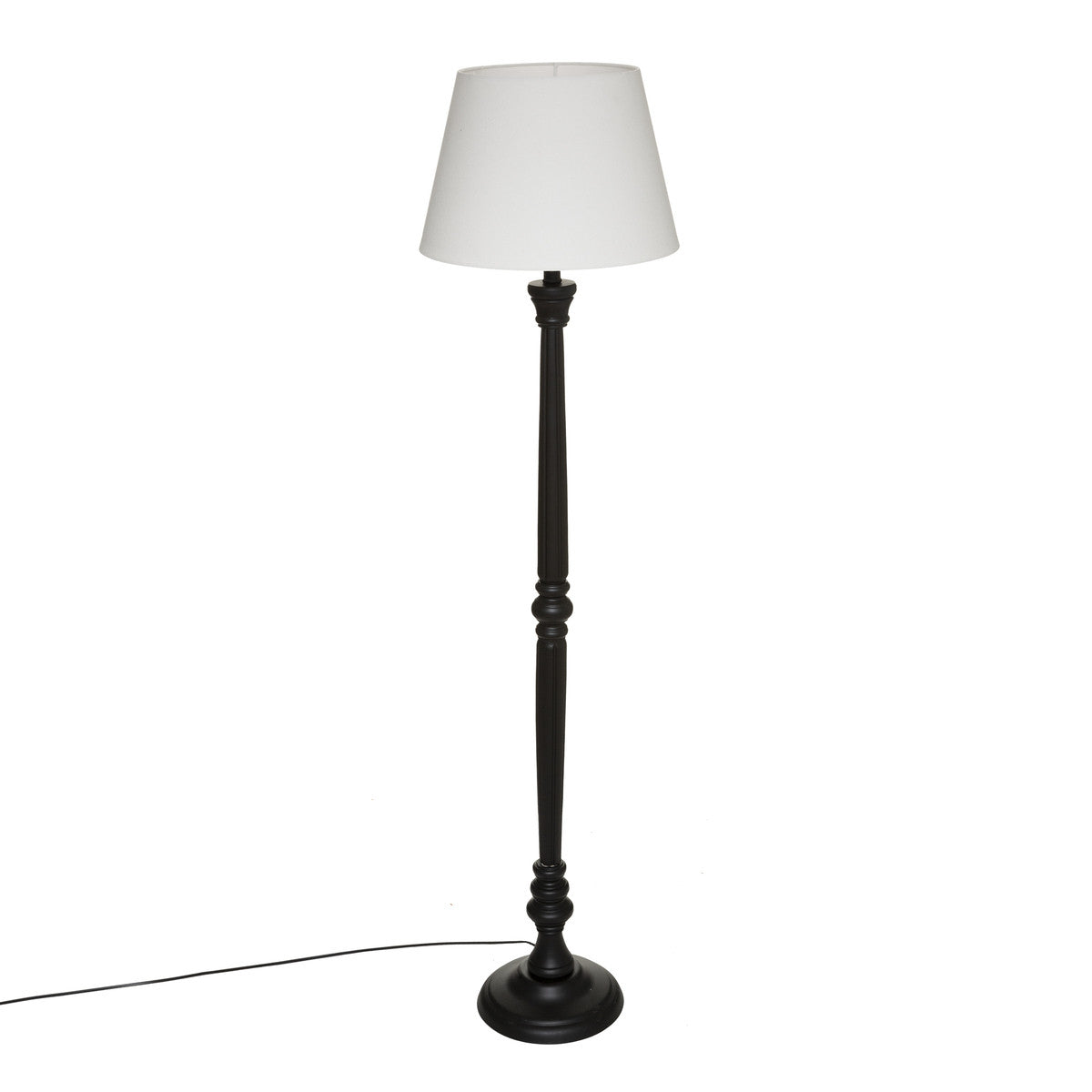 Velador de pie "Léo" madera negra y pantalla blanca H156 - 124255B